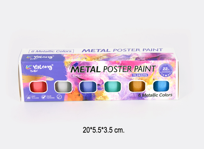 кц_Гуашь арт. YL242215 Набор 6 цветов цвета металлик по 22 мл в кор.