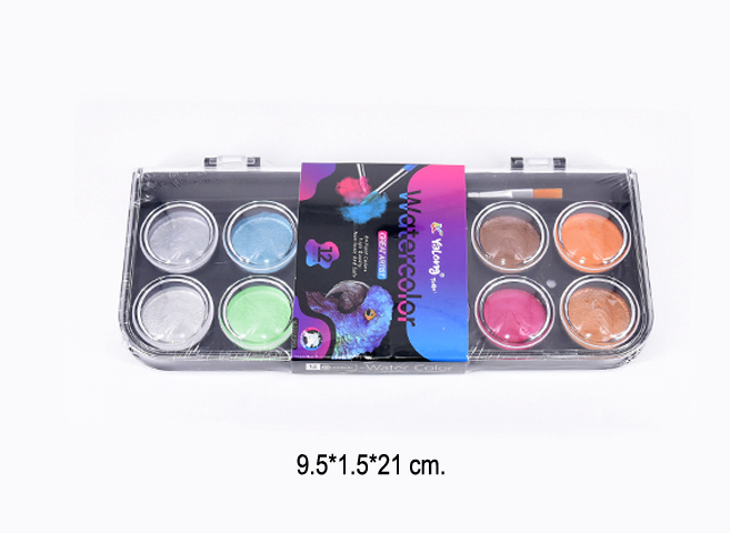 кц_Краски акварельные арт. YL222212-12 Набор 12 цветов металлик с кистью в пластиковой подложке