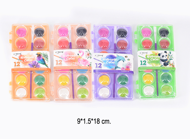 кц_Краски акварельные арт. YL222217-12 Набор 12 цветов с кистью "Попугай" в пластиковой подложке