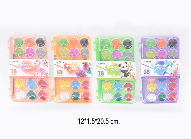 кц_Краски акварельные арт. YL222217-18 Набор 18 цветов с кистью "Попугай" в пластиковой подложке