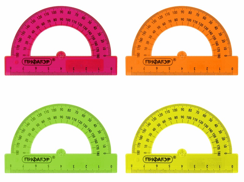 кс_Транспортир арт. 210792 ПИФАГОР 8 см, 180 градусов, прозрачный, неоновый, ассорти