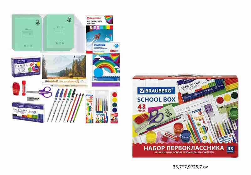 кс_Набор школьных принадлежностей в подарочной коробке арт. 880949 BRAUBERG "ПЕРВОКЛАССНИК 43 предм.