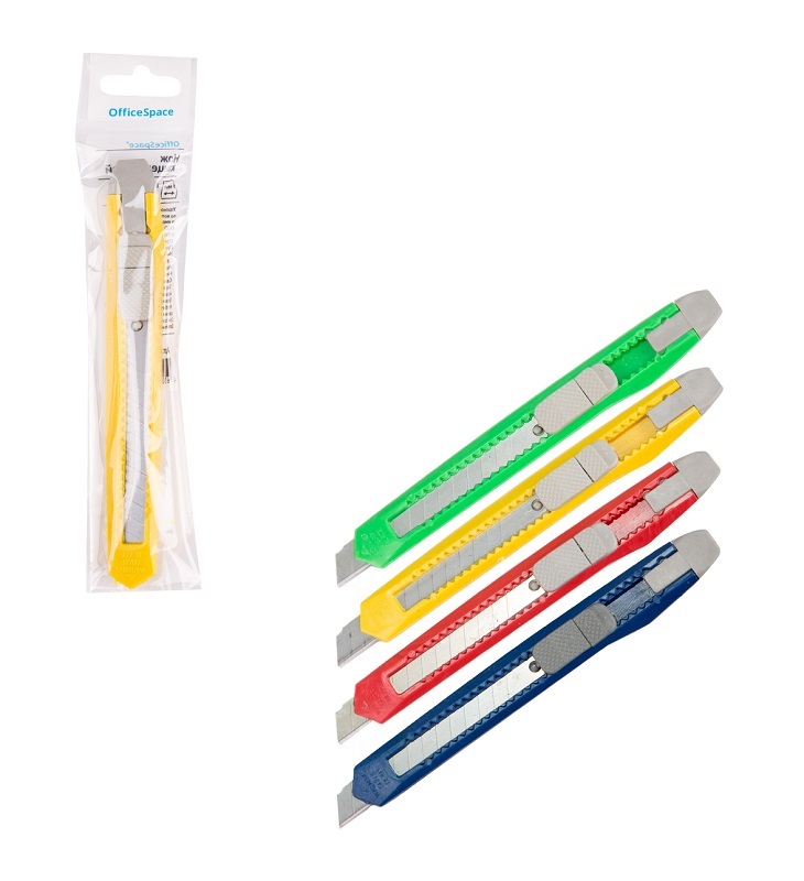 кв_Нож канцелярский арт. CUT9_1364 9мм OfficeSpace, с фиксатором, европодвесШирина лезвия: 9 мм