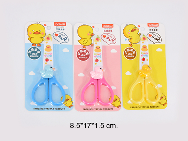 кц_Ножницы арт. WB-2112 Детские с колпаком "Утенок" цвета микс на листе