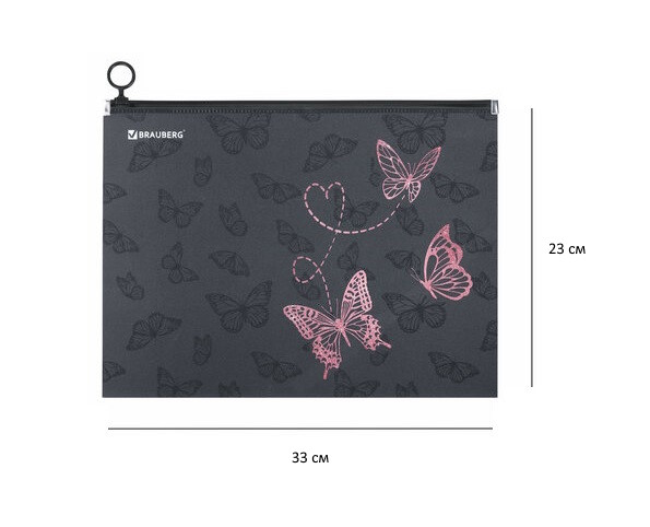 кс_Папка для тетрадей арт. 272103 BRAUBERG А4 1 отдел. пластик на zip-lock-молнии "Neon butterflies"