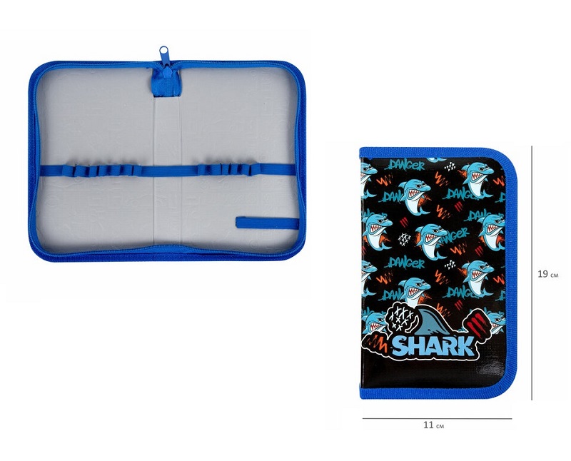 кс_Пенал арт. 272243 ПИФАГОР 1 отделение ламинированный картон 19х11 см "Angry shark"