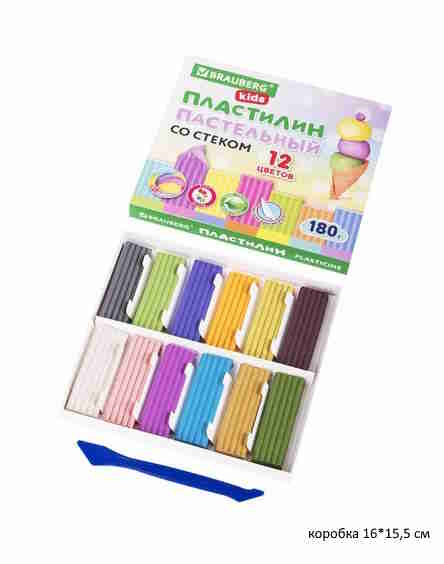 кс_Пластилин классический пастельные цвета арт. 106681 BRAUBERG KIDS 12 цветов 180 г стек