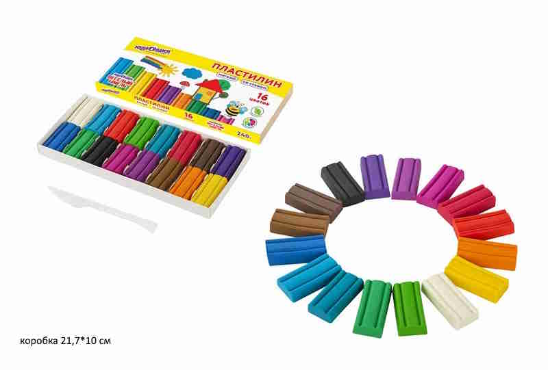 кс_Пластилин мягкий арт. 106673 ЮНЛАНДИЯ "ВЕСЕЛЫЙ ШМЕЛЬ" 16 цветов 240 г СО СТЕКОМ