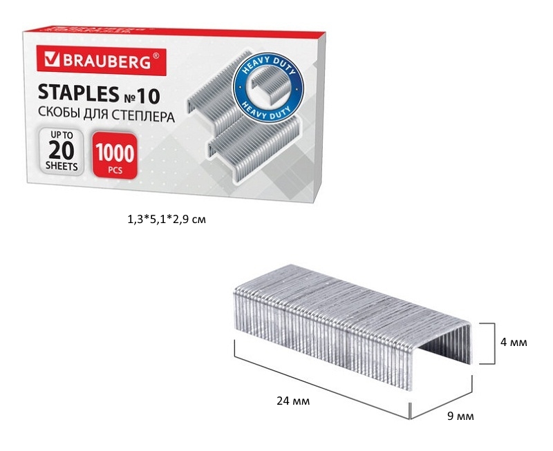 кс_Скобы для степлера №10 арт. 220949 1000 штук, BRAUBERG, до 20 листов