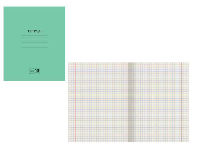 кс_Тетрадь арт. 104986 ЗЕЛЁНАЯ обложка 18 л. клетка с полями, офсет №2 ЭКОНОМ "ПИФАГОР