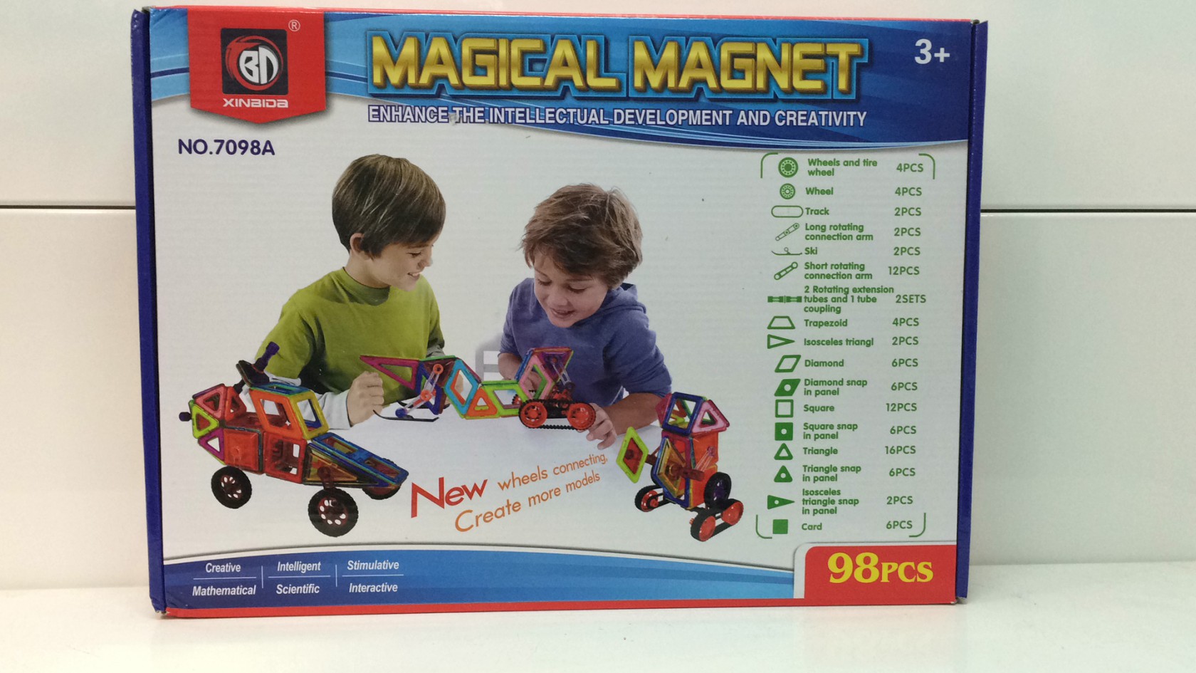 Конструктор магнитный арт. 7098 Волшебный транспорт 98 дет. в кор._