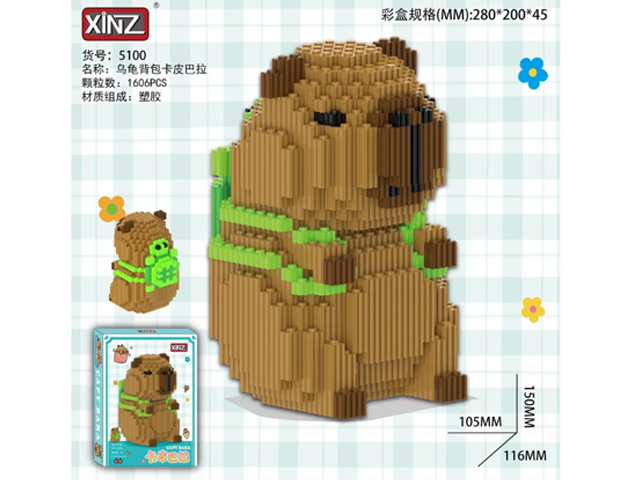 Конструктор арт. 5100-805-802 Микро Капибара с зеленым рюкзаком 1606 дет. в кор.=|