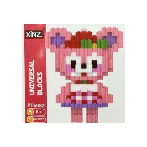Конструктор арт. PT6082 Микро Розовый мишка в платье 687 дет. в кор.|
