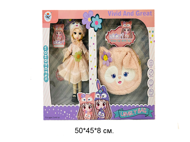 Кукла арт. TZ-29 Шарнирная в шапке с ушками и сумкой в кор.•/48 шт./