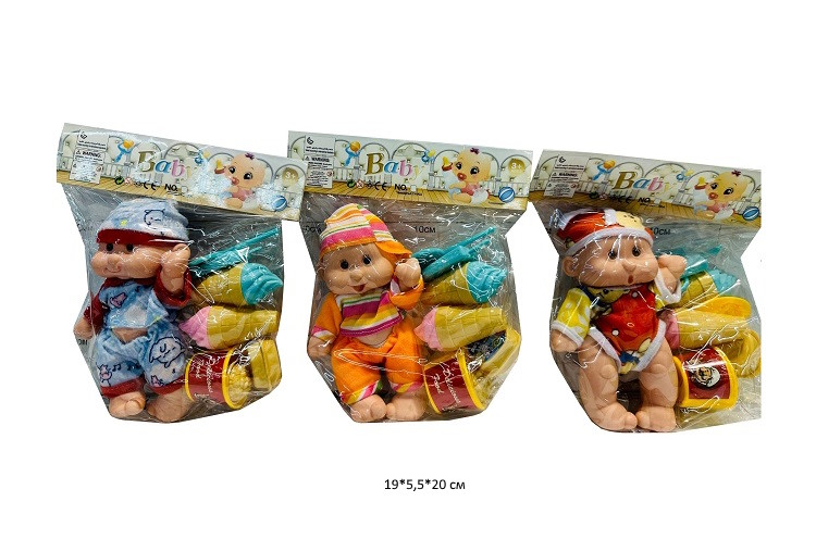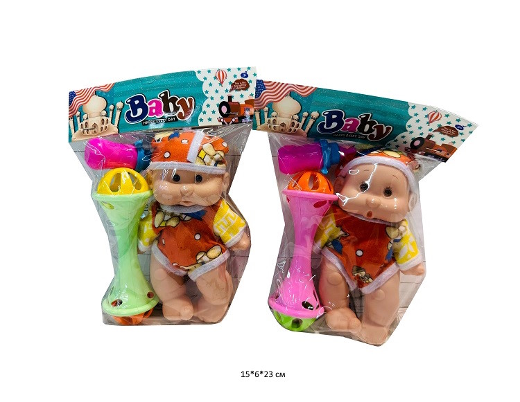 Пупс арт. 833 Маленький с погремушкой, бутылочкой ассорти в пак.•