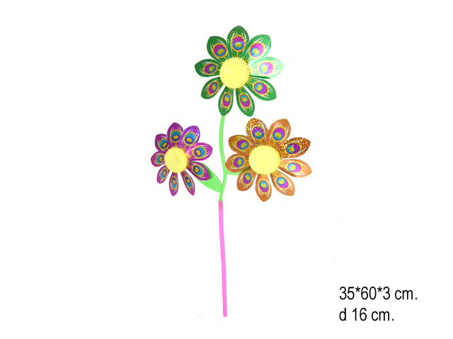 Вертушка детская, Ветерок с 3 крцпными цветками закружит малыша в вихре эмоций! Покажите ребенку, как дуть на неё, чтобы мельница завертелась, либо просто наблюдайте вместе, как она придёт в движение от малейшего порыва ветра.