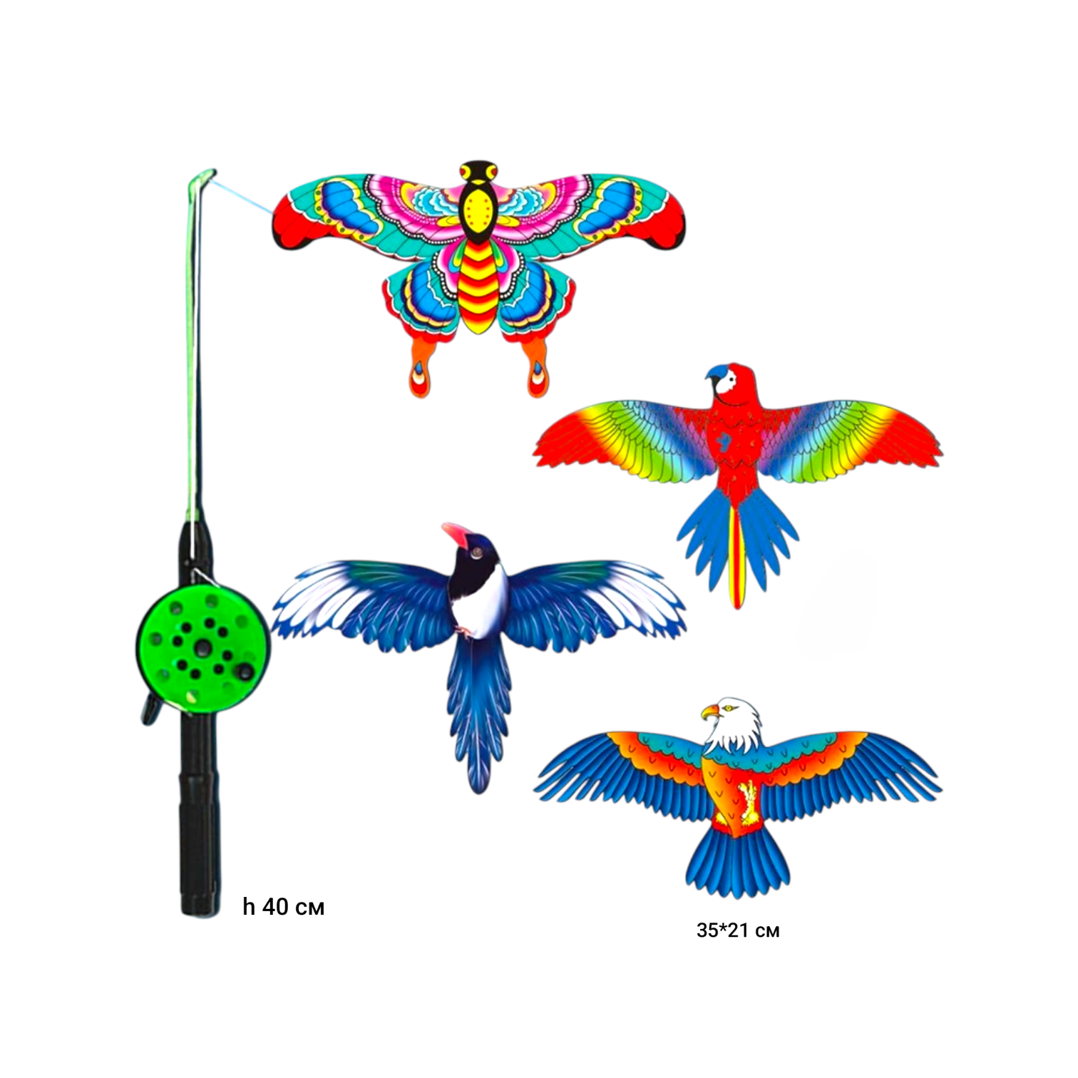 Воздушный змей арт. PT01 На удочке h40 см 35 см1 шт в ассортименте в пак._