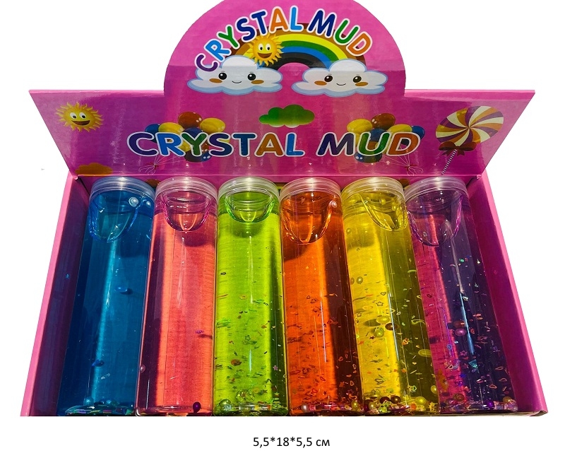Лизун арт. RF-234 Прозрачный с блестками, шариками колба (6 шт.) шоубокс•