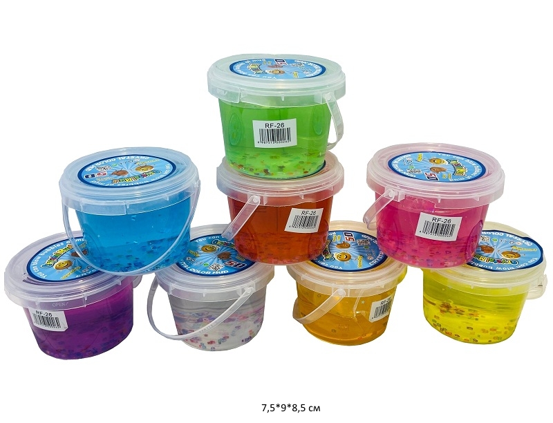 Лизун арт. RF-26 Цвета микс прозрачный с блестками ведерко с ручкой•