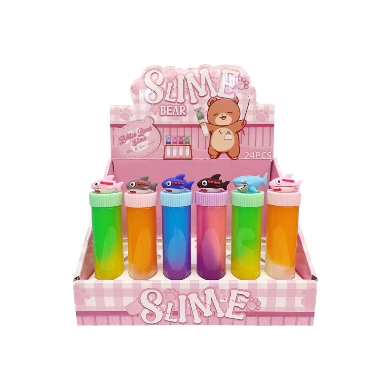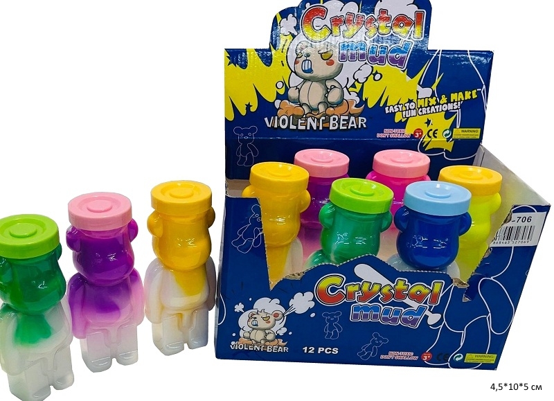 Лизун арт. LY2079 Медведь цвета микс прозрачн. банка с фигурн. крышкой (12 шт.) шоубокс_