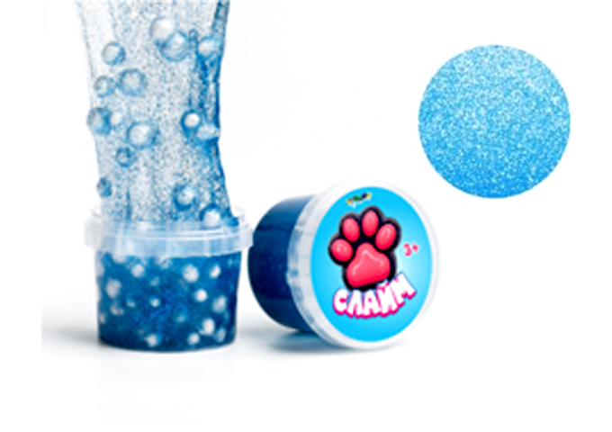 Слайм "СТЕКЛО" 90 гр с Ярко-Синими блестками с шариками