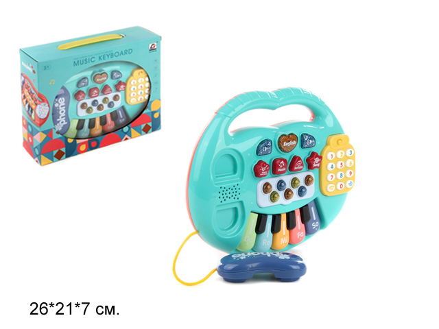 Детская развивающая игрушка пианино поможет вашему ребёнку выучить ноты и научит пользоваться телефоном. Множество звуковых и световых эффектов не оставят вашего ребёнка равнодушным. Синтезатор работает на батарейках АА 3 шт., не входят в комплект.Функционал игрушки: -при включении проигрывает мелодию и зажигает лампочки;-громкость звука регулируется;-имеет несколько режимов работы, издаёт звуки пианино и называет цифры, издаёт звуки телефона, называет животных и имитирует их, при нажатии кнопок включает различные мелодии;-при нажатии кнопок лампочек проигрывает различные мелодии;-имитирует музыкальные инструменты;-поёт 3 вида песен, после нажатия кнопки "английский" произносит простые фразы на английском; -телефонная трубка отсоединяется и присоединяется.Размеры синтезатора: 26*20*6 см. Изготовлено из пластика.