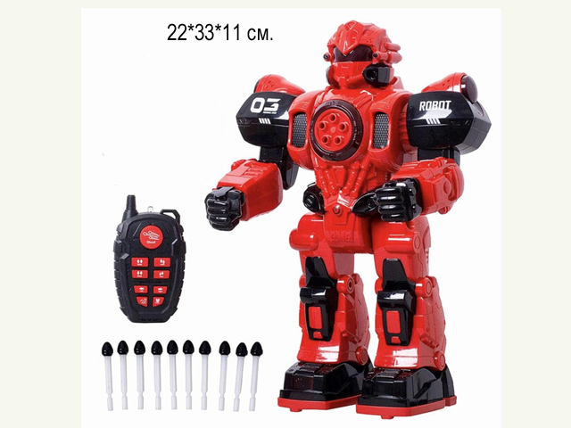 Радиоуправляемый робот, который умеет ходить/скользить вперед и назад, поворачивать направо и налево, танцевать и стрелять стрелами (в комплекте 10 штук). Управление игрушкой осуществляется нажатием соответствующих кнопок на ИК-пульте. У робота имеются встроенные светозвуковые функции: при включении он говорит фразу на английском языке, воспроизводит звуки стрельбы и светится в области живота и глаз.