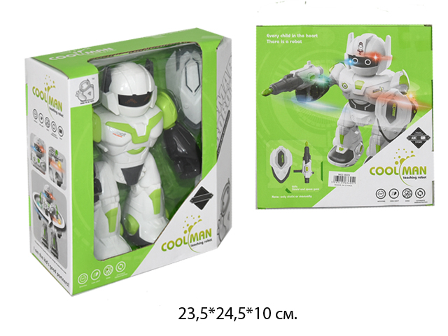 Робот арт. 7M-410" На батар. в коробке 23,5*16*11Робот выглядит как фантастический герой-защитник, вооруженный мощным бластером, расположенном в руке. Оружие отсоединяется и может использоваться отдельно. Руки, ноги и голова робота двигаются, благодаря чему он выглядит реалистично. Ходьба сопровождается звуками стрельбы и световыми эффектами.