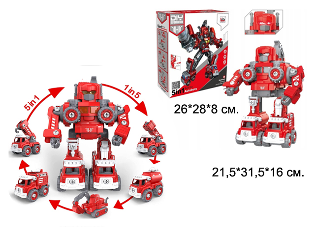 Игрушки для мальчиков: пожарная машина, 5 в 1. Разборная пожарная машина-робот для мальчиков 5, 6, 7, 8, 9 лет. Набор игрушек для мальчиков: пожарная машина.