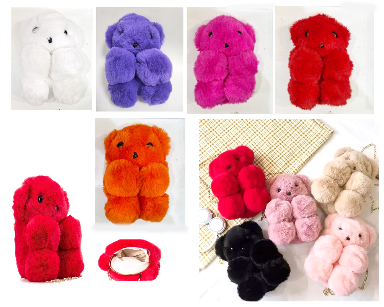 Сумка арт. 709034 Медведь меховой на молнии с ручкой-цепочкой 30*20 см цвета микс в пак.