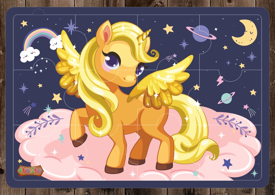 Деревянный пазл арт. ДВП 004 "Единорожек" 12 деталей