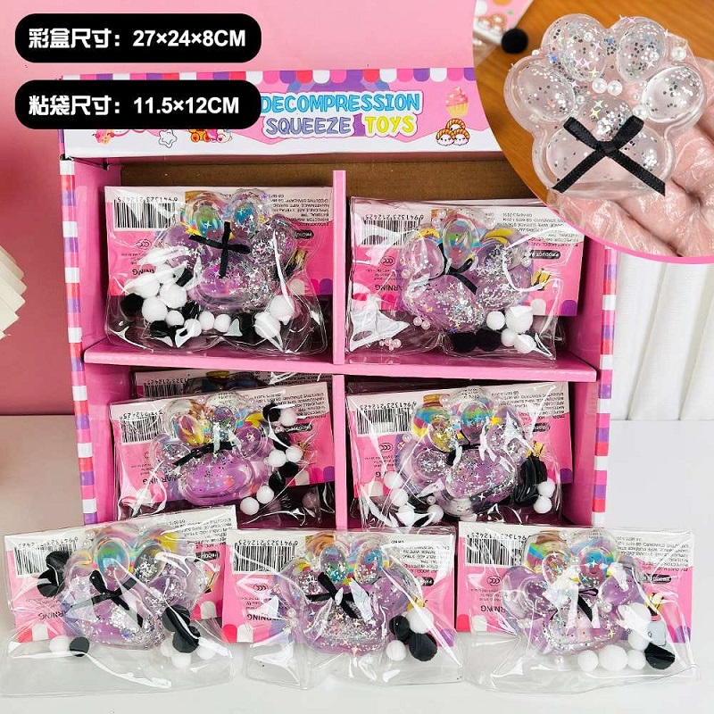 Антистресс арт. 805198/442-802 Лапка мальтоза прозрачн. с бантиком в пак. (16 шт.) шоубокс=)