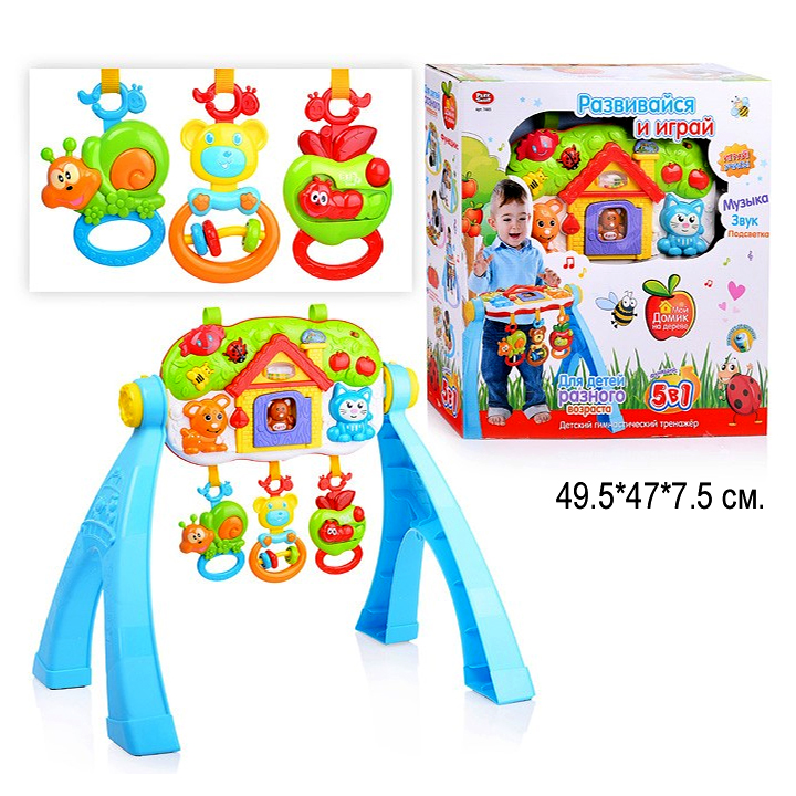 Яркое оформление бизиборда расширяет кругозор малыша и формирует у него образное мышление.