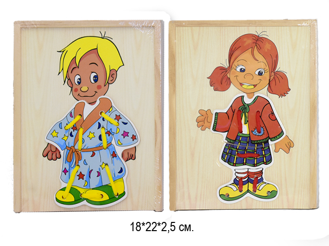 Деревянная игрушка арт. 93-1 Шнуровка "Мальчик и девочка" в пленке_