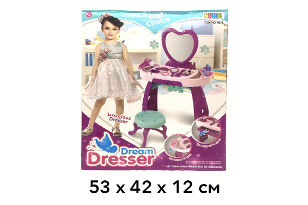 Трюмо с зеркалом и стульчиком для маленькой принцессы. В столике есть выдвижной шкафчик для хранения аксессуаров маленькой модницы.