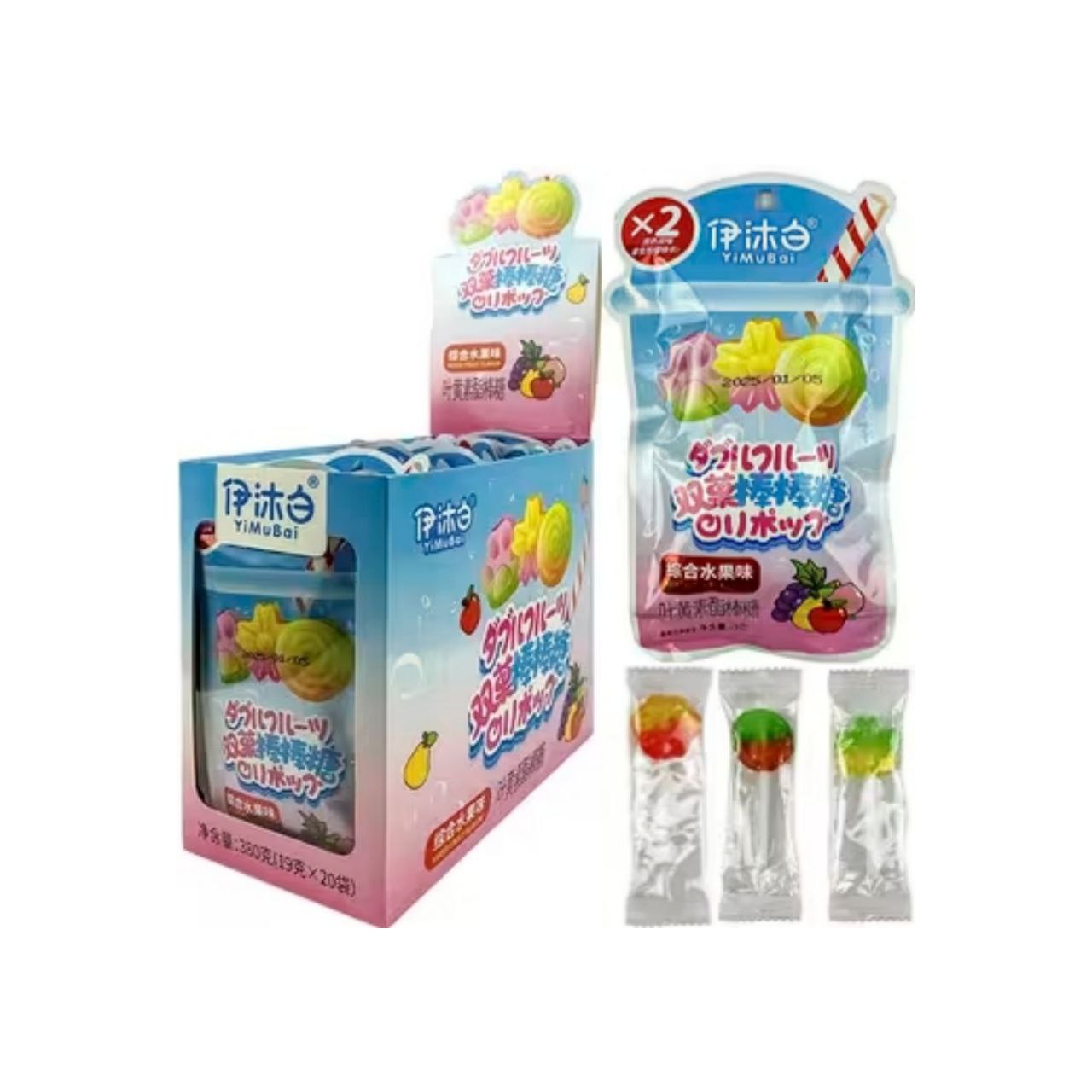 Конфета арт. 063711/ Карамель на палочке "Двойной вкус" микс вкусов 19 г 20 шт. в кор.'