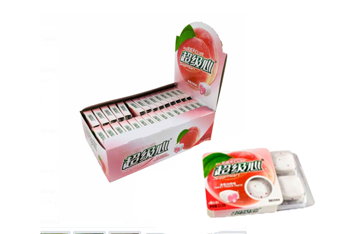 Жевательная резинка арт. 557250/557243 С начинкой "Персик" 13,5 г 30 шт. в кор.',Жевательная резинка арт. 557250/557243 С начинкой "Персик" 13,5 г 30 шт. в кор.',