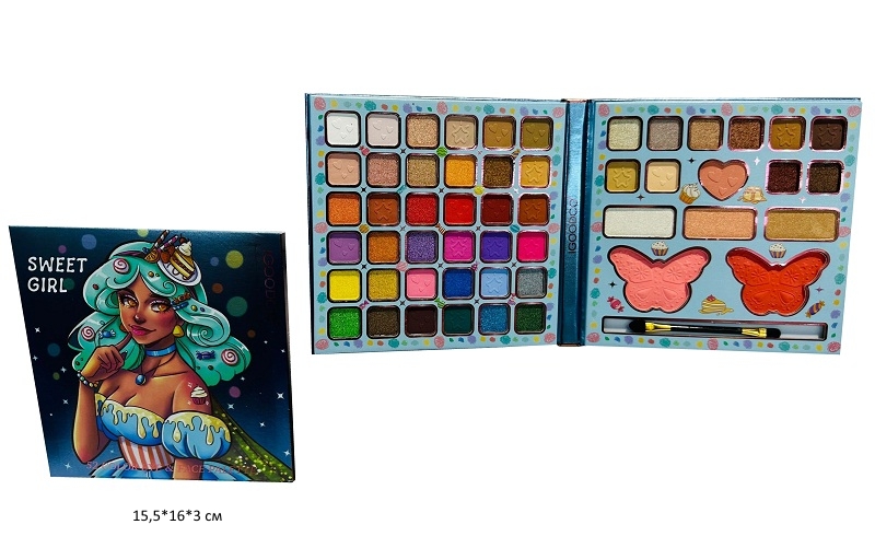 В палетке 47 оттенков теней, 2 оттенкка румян, хайлайтер, бронзер, корретор.