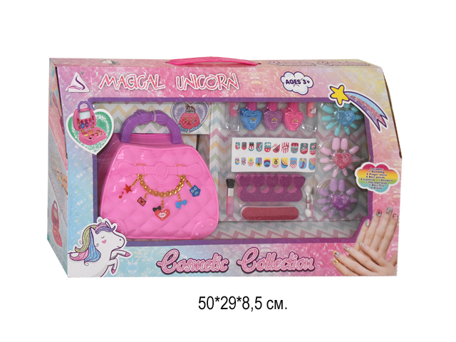 Набор детской косметики для макияжа и маникюра в сумочке.
