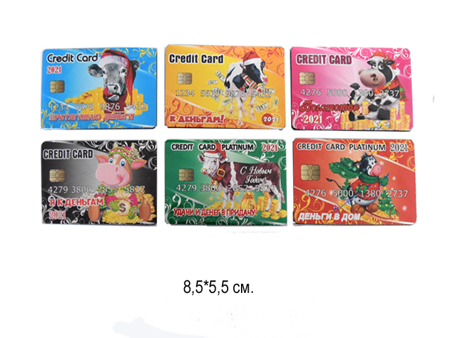 Магнит Бычок арт. 5-M Кредит. карта 1шт. в асортим. (60 шт.)