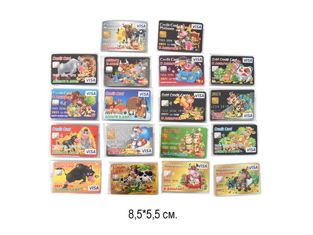 Магнит Бычок арт. 7-S Кредит. карта 1шт. в асортим. (50 шт.)