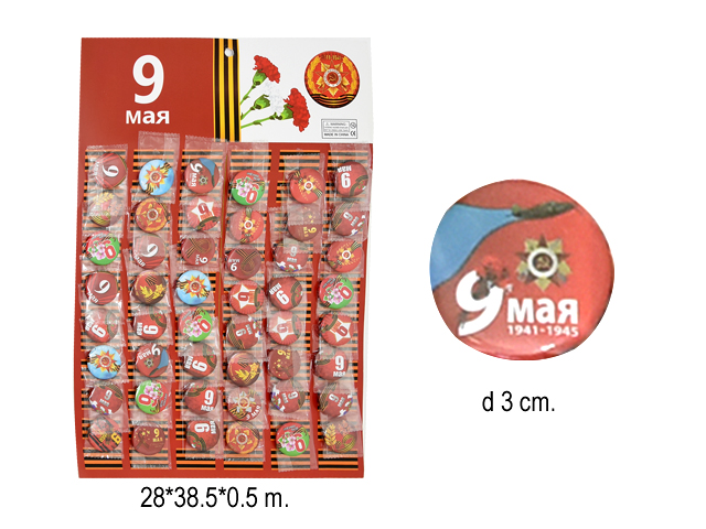 Значок арт. 209925 "9 мая" в ассортименте 48 шт. на листе