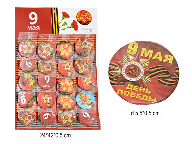 Значок арт. 209926 "9 мая" в ассортименте 20 шт. на листе