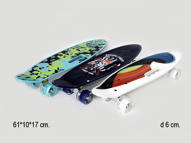 Скейт арт. 00165S/ 005" 61см, колеса PU, свет, 60*45 мм, с ручкой с кантом /8шт.//бл./