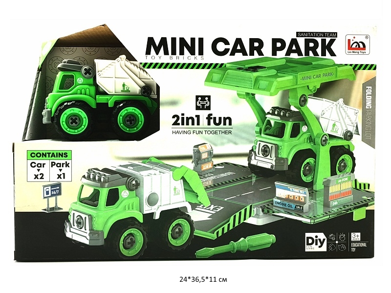 Машина констр. арт. LM9048-1A Мусоровоз Набор "Мини парковка" с отверткой в кор._