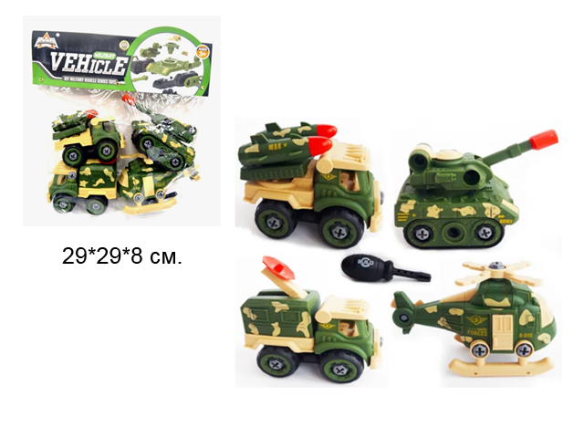 Машина констр. арт. LY068 Набор "Военный" 4 шт. с отверткой в пак.•