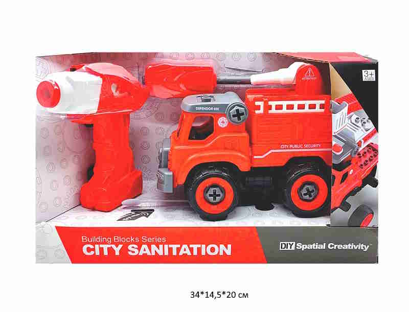 Машина констр. арт. LM8032-DZ-1 Пожарная с отверткой, шуруповертом в кор._