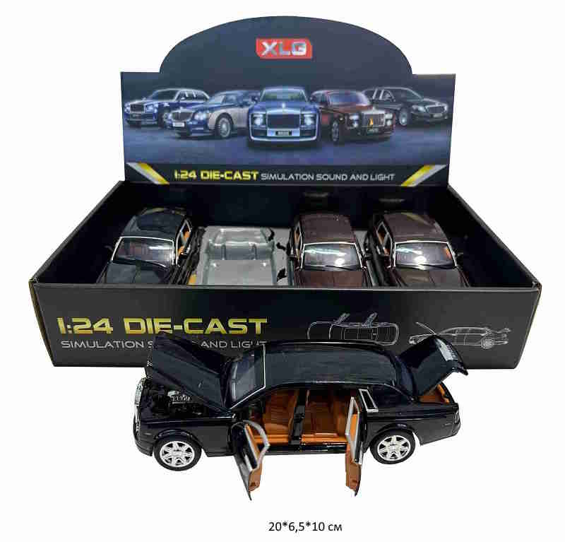 Модель металл. арт. 1900-12 Роллс-Ройс инерц. свет, звук (8 шт.) шоубокс•У модели открываются все двери, капот и багажник, детально проработанный салон, световые и звуковые эффекты. Игрушка с инерционным механизмом: оттяните ее назад и отпустите - машинка умчится вперед, набирая скорость.