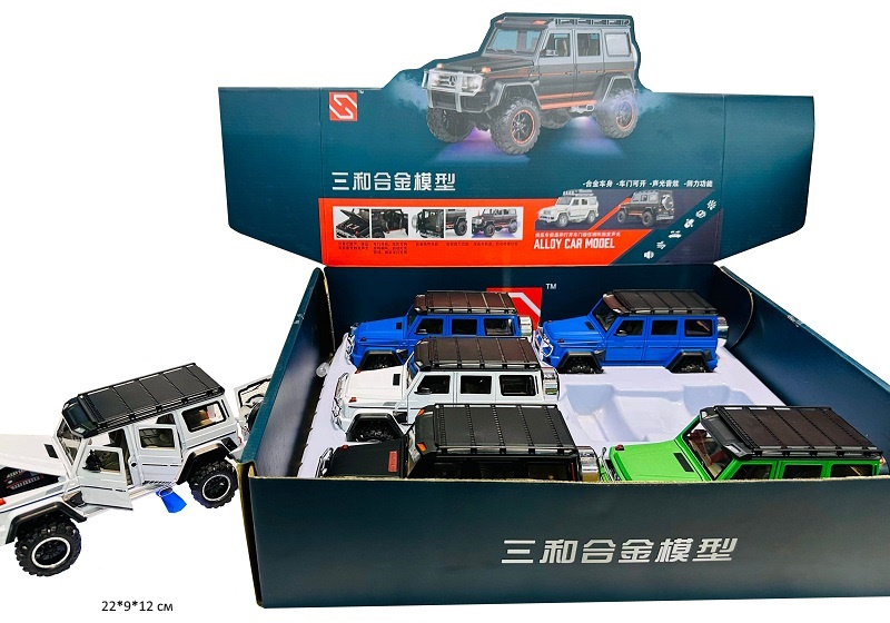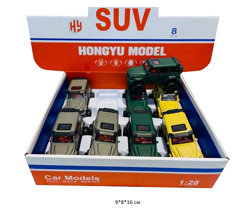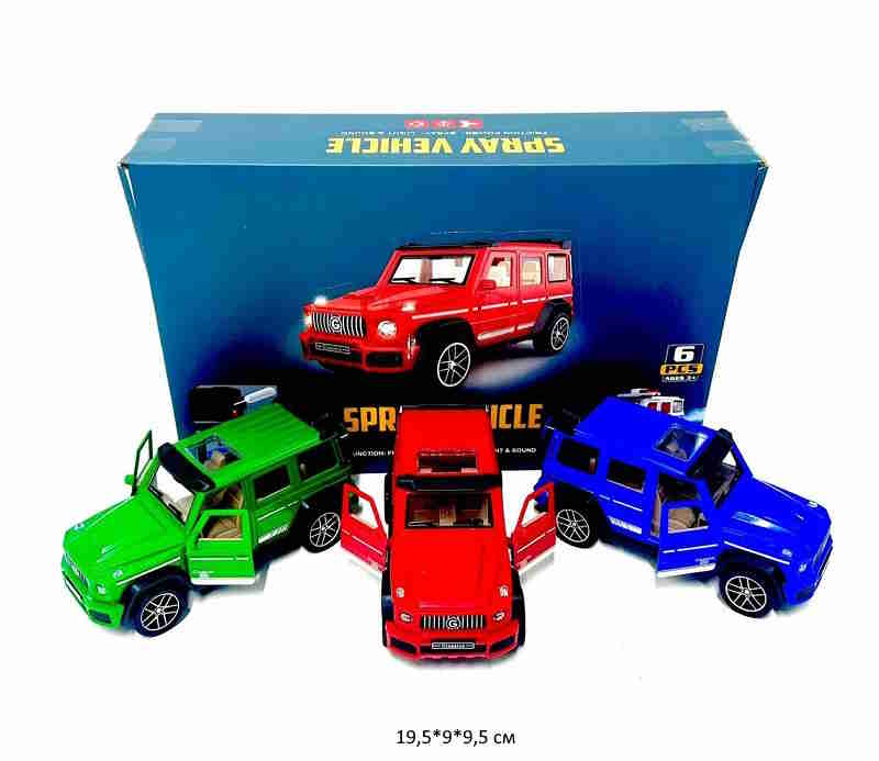 Модель металл. арт. 24016P Джип цвета микс свет, пар (8 шт.) шоубокс•У модели открываются все двери, капот и багажник, детально проработанный салон, световые и звуковые эффекты, а так же функция пуская пара. Игрушка с инерционным механизмом: оттяните ее назад и отпустите - машинка умчится вперед, набирая скорость.