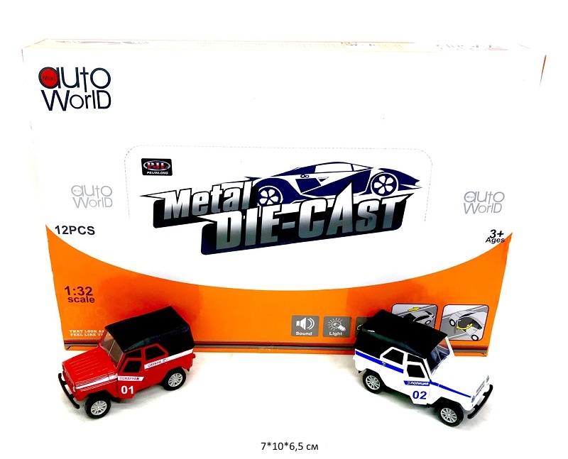Модель металл. арт. 1801PD ВАЗ Джип ДПС инерц. свет, звук (12 шт.) шоубокс_